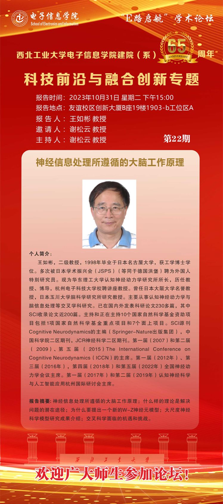 “E路启航”学术论坛第22期——神经信息处理所遵循的大脑工作原理