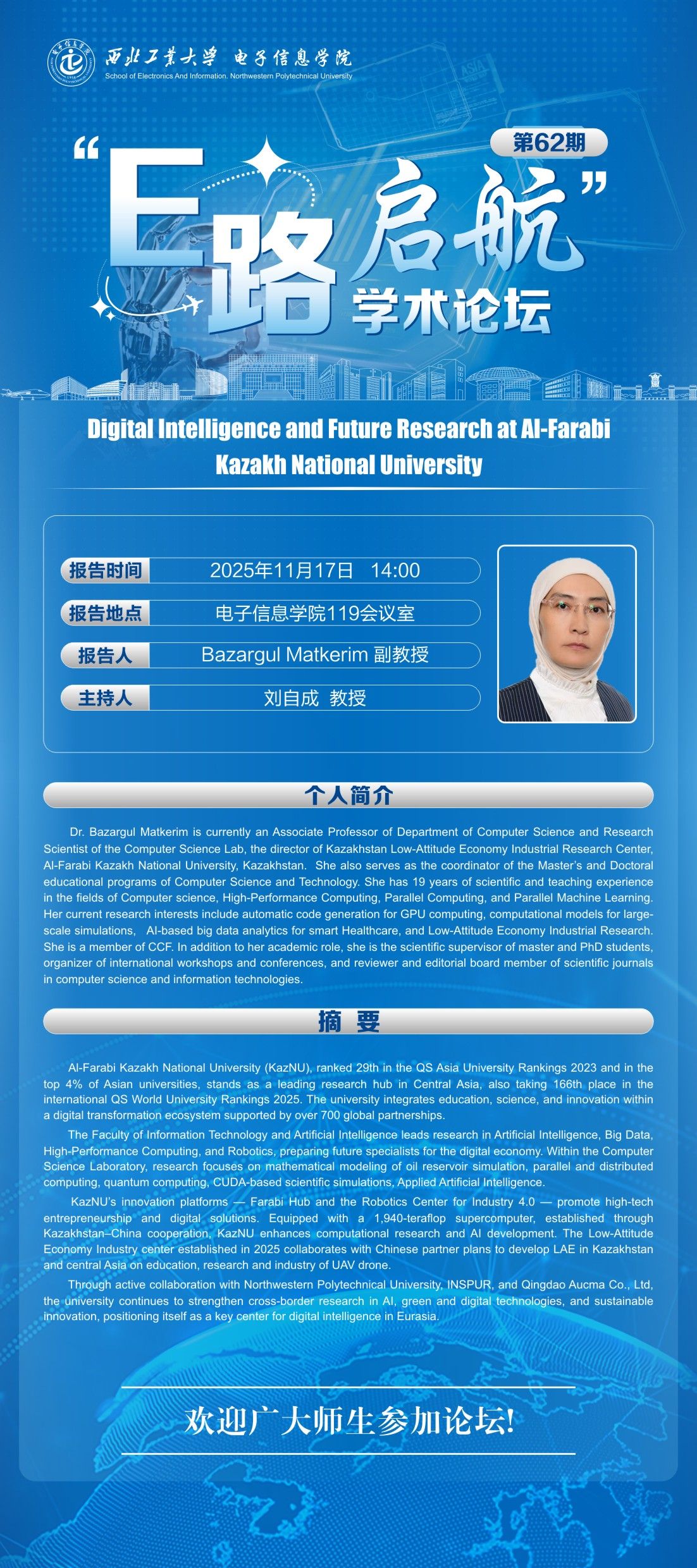“E路启航”学术论坛第62期——Digital Intelligence and Future Research at Al-Farabi Kazakh National University
