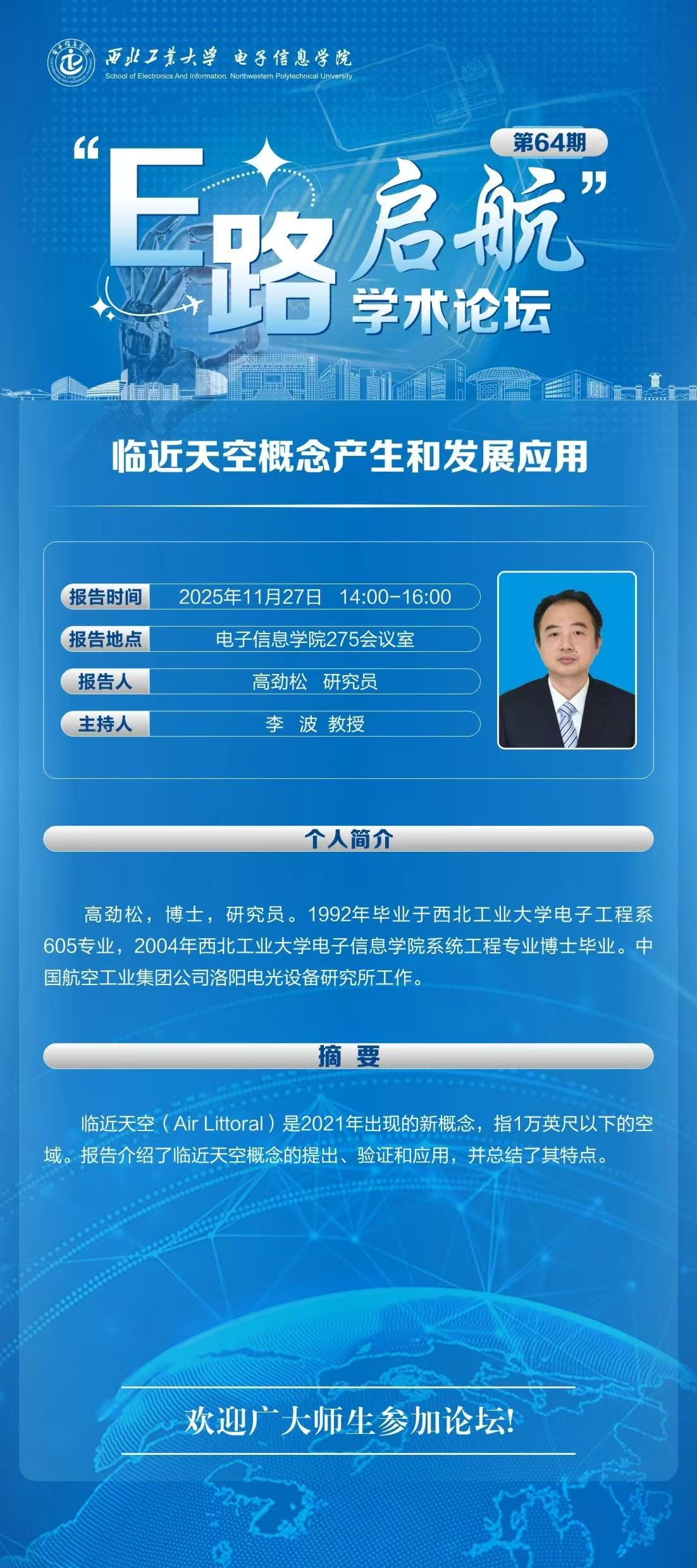 “E路启航”学术论坛第64期——临近天空概念产生和发展应用