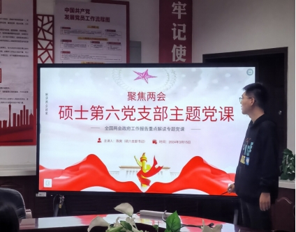 硕士第六党支部在学院432会议室开展了关于全国两会政府工作报告重点解读专题党课。本次党课由硕士第六党支部书记陈爽同志主持,支部全体党员参加。