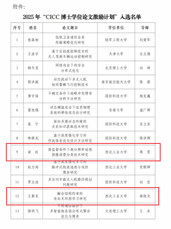 博士毕业生苗旺(导师:蒋雯教授)、王紫东(导师:高晓光教授)的博士学位论文成功入选。