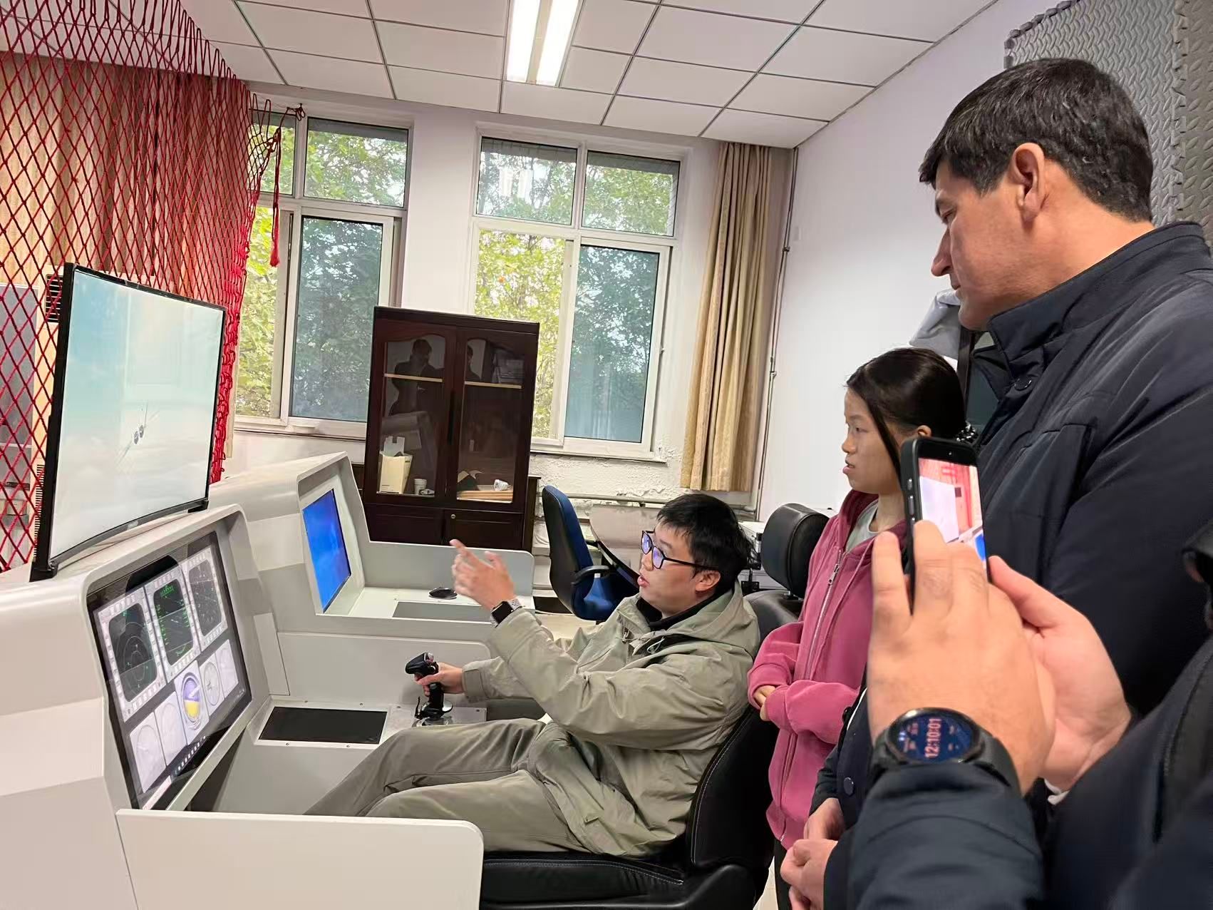 ,并开展学术交流。学院党委书记侯俊、院长助理秦雨潇对其到来表示诚挚地欢迎。秦雨潇首先带领代表团参观了学院飞行器综合体性能分析国际科技合作基地。基地学生向外宾介绍了飞行器研究项目并进行演示。参观结束后,学院党委书记侯俊与代表团进行了友好交流,双方在融洽的氛围中合影留念。