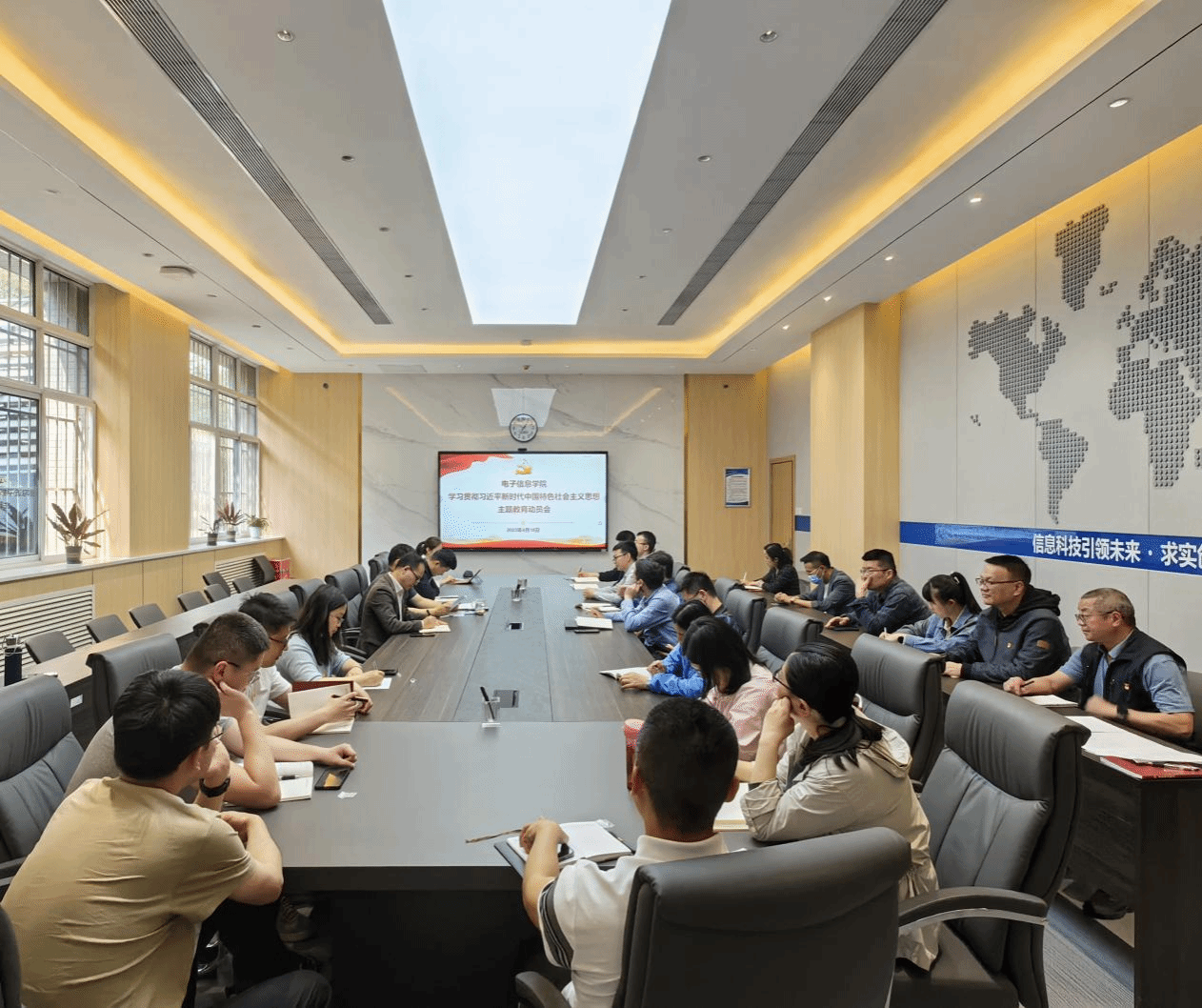 会议传达学习了学校学习贯彻习近平新时代中国特色社会主义思想主题教育动员大会精神,组织学习了学校主题教育实施方案,侯俊就学院贯彻落实主题教育工作进行了动员部署。