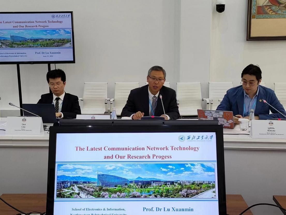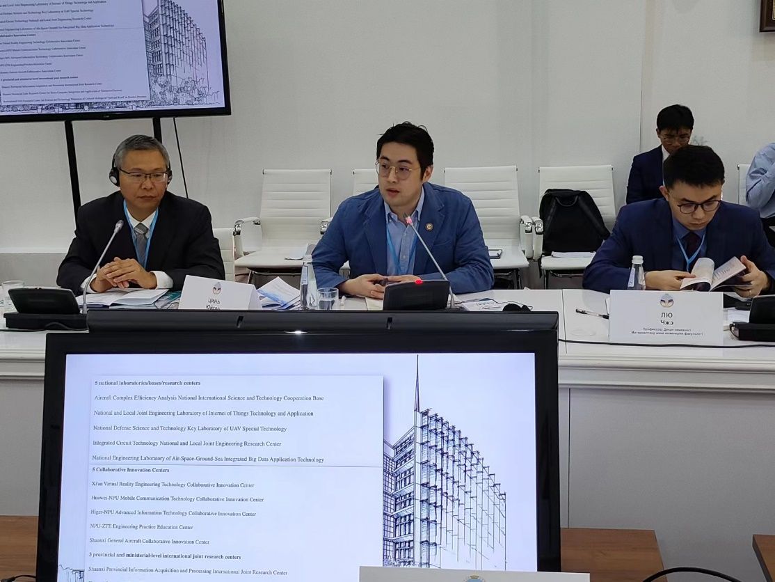 In May, 2023, during the first China-Central Asia Summit, Northwestern Polytechnical University and Ali Farabbi Kazakhstan State University (hereinafter referred to as "Kazakhstan University") jointly established a branch school in Kazakhstan, and information and communication engineering of the School of Electronic Information was one of the first three majors in the branch school. Recently, under the leadership of Director Zhang Fuli of the International Cooperation Department, the college's assistant dean Qin Yuxiao, associate professor Lu Youmin, associate professor Tang Xiao, and foreign secretary Wang Qiuxia went to Kazakhstan to attend the first Sino-Kazakhstan Frontier Science Seminar, and discussed the cooperation between branches to accelerate the construction of branches.